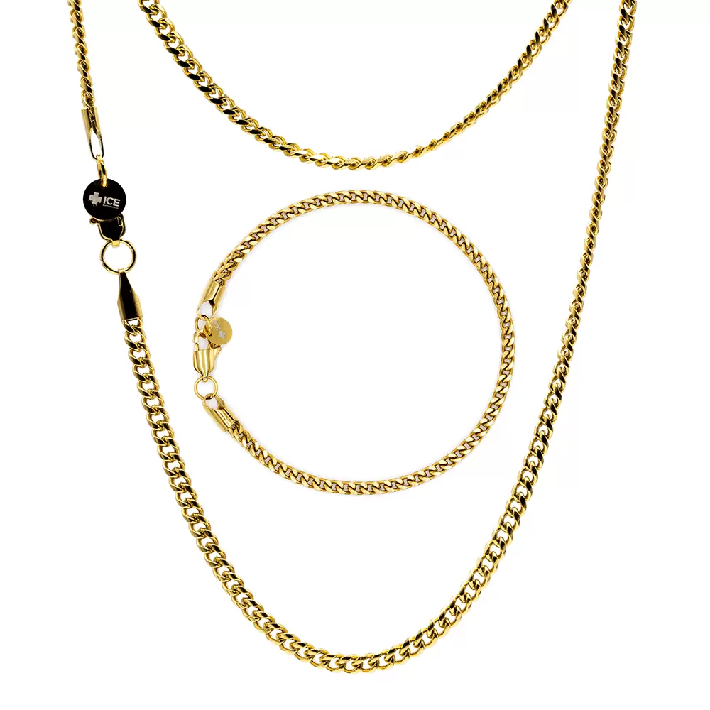 3mm Miami Cuban Chain Bracelet Set – 18k Gold von ICE Switzerland: Klassischer Glanz
