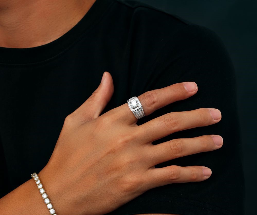Einzigartiges Design: Das vollflächig mit Moissanite-Diamanten besetzte Bustdown-Design verleiht dem Ring eine luxuriöse Ausstrahlung. Jeder Stein wurde präzise von Hand gefasst, um maximale Strahlkraft und Eleganz zu garantieren. Dieses Schmuckstück eignet sich perfekt für alle, die auf der Suche nach einem auffälligen und stilvollen Accessoire sind.