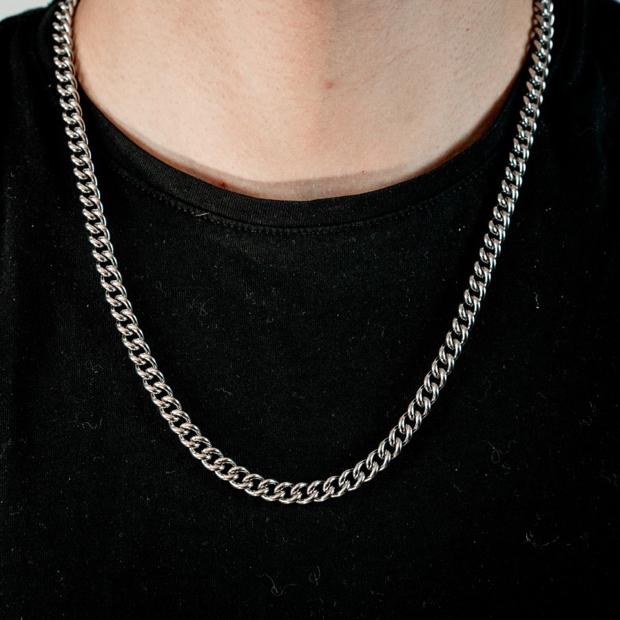 Diese Miami Cuban Link Chain bringt dir massiven Street-Style – robust, glänzend und ready to flex. Mit 7mm Breite und hochwertigem Edelstahl liefert diese Chain den ikonischen Miami-Vibe im Weissgold-Finish.