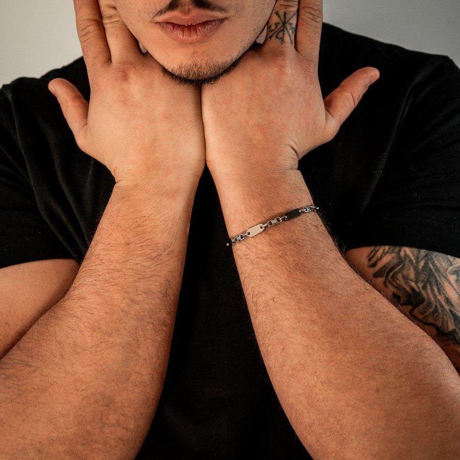 Das Plattenarmband laesst sich ideal solo tragen oder mit Watches, Ringen und Ketten kombinieren. Es passt zu Casual- und Streetwear-Outfits und eignet sich fuer Maenner und Frauen.